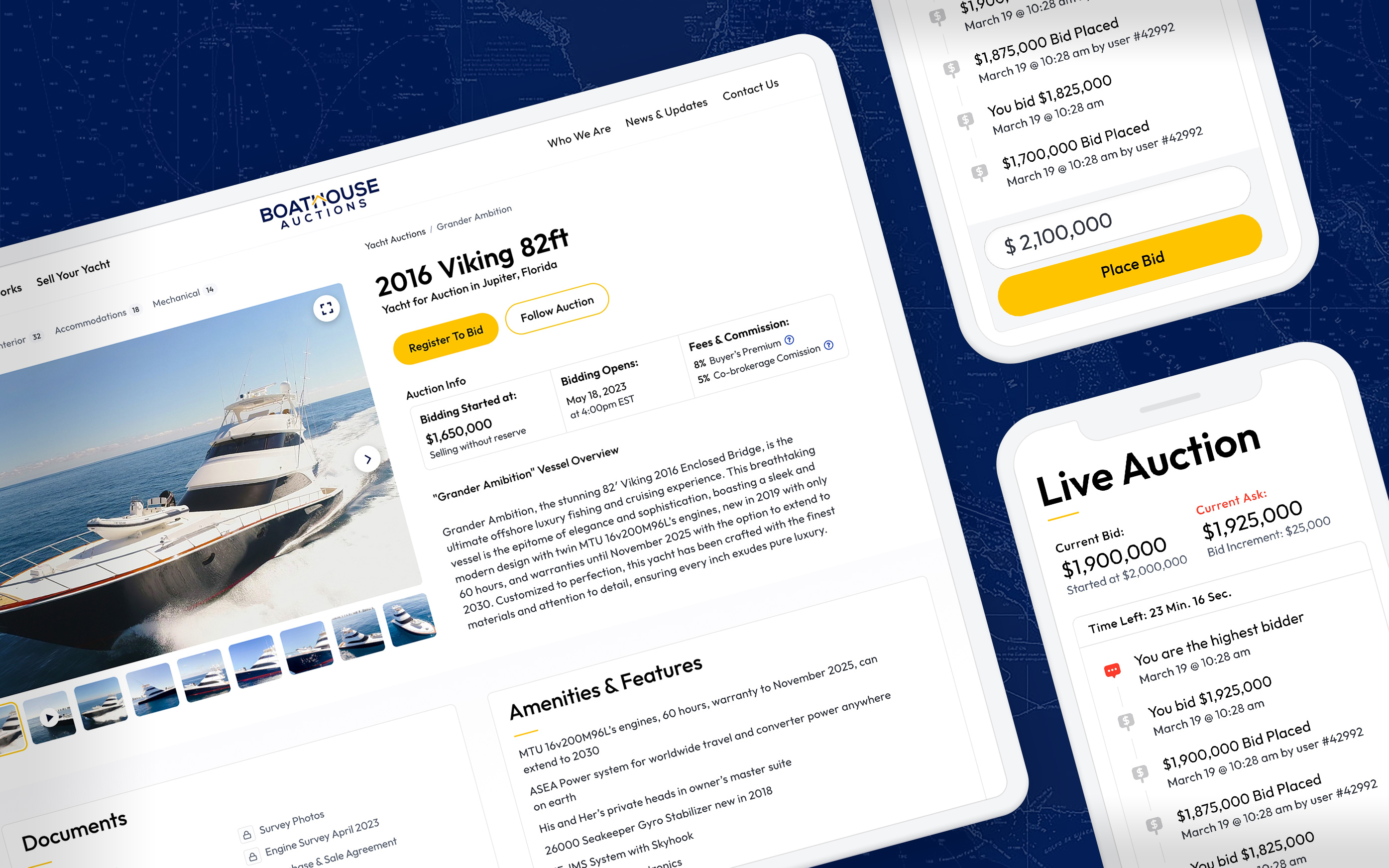 Recognizing the limitations of the traditional yacht resale model, we built a platform that provides an alternative approach. Introducing the first and only fully-integrated online boat auction platform designed to remove friction in the sales process for yacht buyers and sellers.