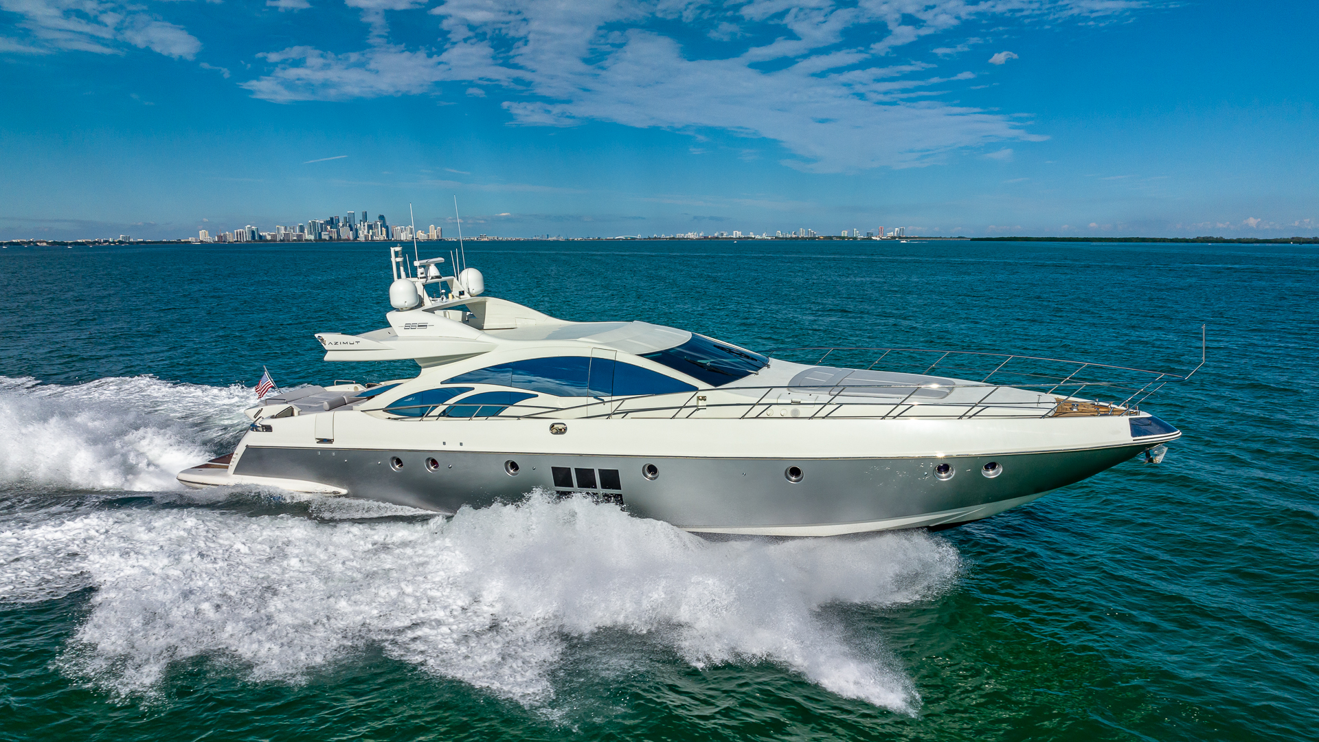 “M” is a stunning 2008 Azimut 86S Hamilton Jet Drive Express Yacht with a sleek silver hull. She underwent an extensive refit in 2020-2021, including a complete interior transformation in 2021. Offering luxurious accommodations, she features four beautifully appointed staterooms and four en-suite heads.