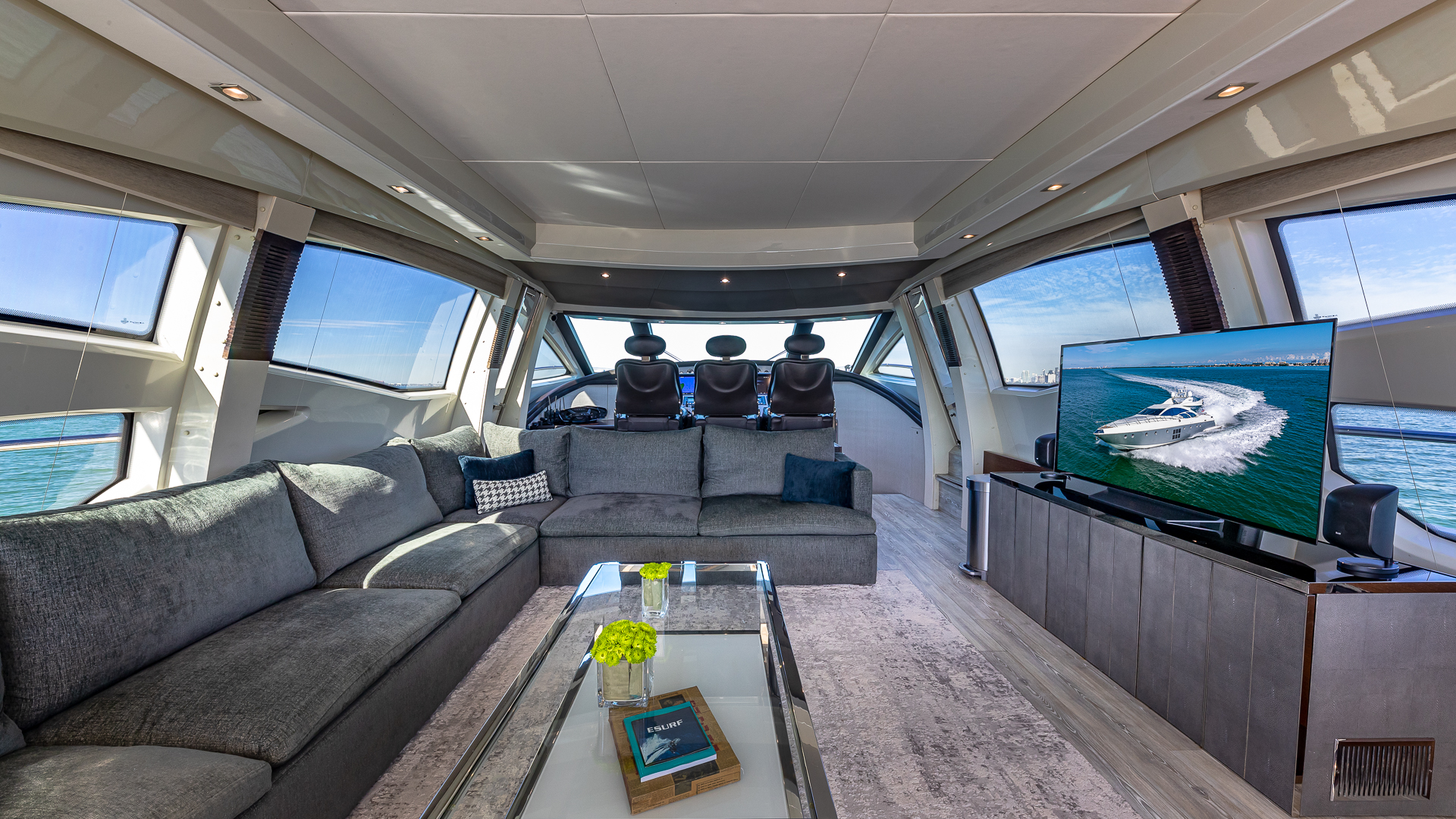 Her upgrades include a state of the art FLIR camera, Smart TVs, the latest WiFi technology, a SONOS sound system, fixed and mobile camera systems, custom salon furniture, and new flooring. Additionally, she has received major engine and generator servicing, a recent haul-out with full bottom painting, and thorough jet tunnel cleaning, ensuring she is impeccably maintained and ready for adventure.