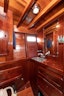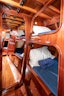 There are no shortcuts in Carpenter’s craftsmanship and woodworking as the attached (Documents section) 1982 WoodenBoat Magazine article chronicles the builder’s process and complete fascination with perfection. All doors are one-piece solid slabs of Honduran mahogany. The inlay work on the counters, tables, and transom, all done by Vic himself, are worthy of any art gallery. Unbelievably for a boat constructed in 1992, Passing Wind is built entirely from wood, from her hull to her 1″ thick decking constructed from three layers of laminated red cedar and mahogany. The majority of the metal fittings—from the milled and shaped aluminum toe rail to the intricately laminated wood wheel to the mast track that twists its way upward starting below the boom—were custom designed and hand-crafted by Vic. Custom hardware and exquisite woodworking details abound with its parquet cabin sole and fine leather-covered settees and cushions. The layout speaks of the owner’s wish to have a competitive ocean racing yacht with sumptuous yet practical accommodations. There is not an inelegant detail aboard the vessel and even the bilges are beautifully finished. Passing Wind is spectacular in all facets of detail and she is truly one of a kind. No wonder she took six years to build.