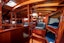 Forward double bed ensuite Master cabin, with midship living space aft. Aft of midships are 12 berths (6 port, 6 starboard)